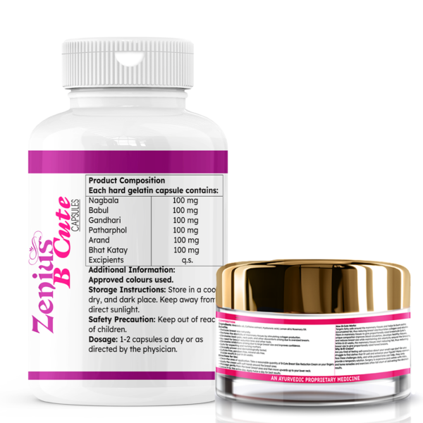 Zenius B Cute Kit is truly a wonderful complete treatment for reducing breast size combined into one- from capsules to a topical cream. The kit is completely Ayurvedic for women who want a natural way of reducing breast size without any surgery. The kit consists of 60 capsules plus 50 grams of cream containing a combination of herbs in the organic health benefit.