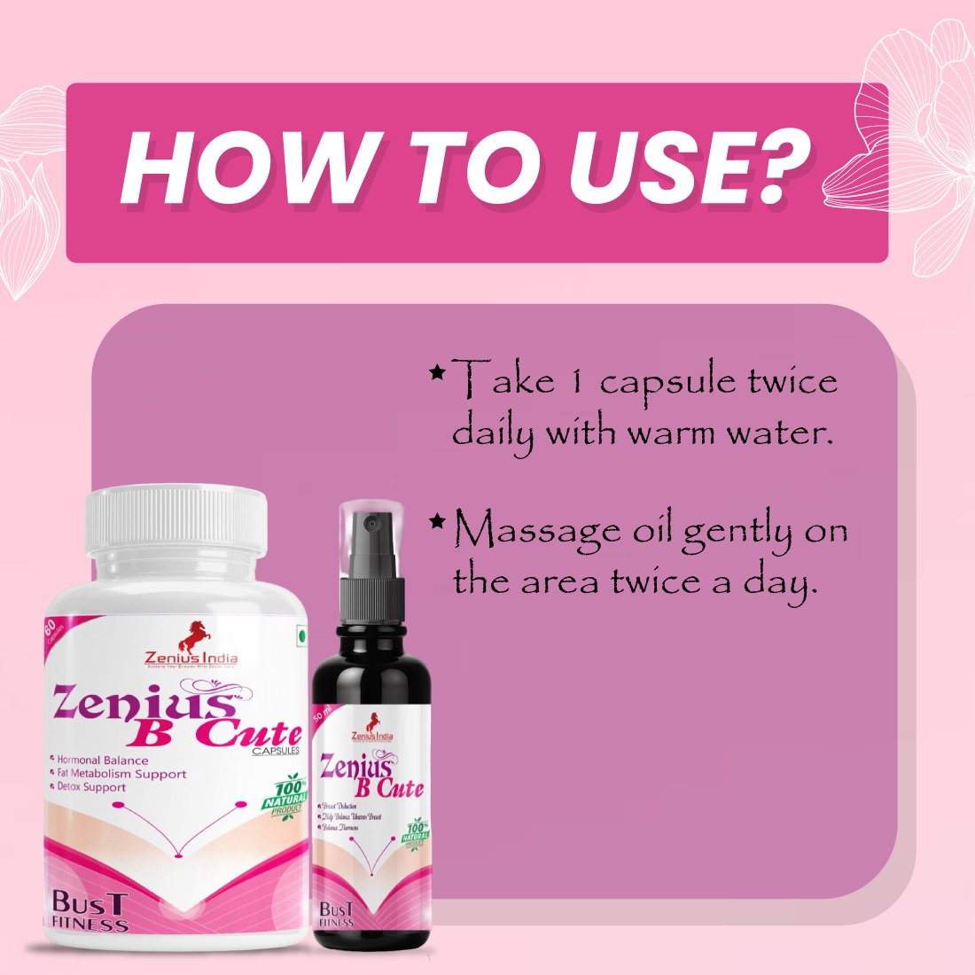Zenius B Cute Kit is truly a wonderful complete treatment for reducing breast size combined into one- from capsules to a topical cream. The kit is completely Ayurvedic for women who want a natural way of reducing breast size without any surgery. The kit consists of 60 capsules plus 50 grams of cream containing a combination of herbs in the organic health benefit.