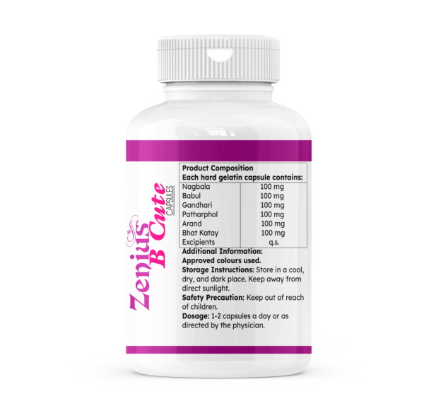 Zenius B Cute Capsule is a combined preparation of many herbs that provide the much-needed, sufficient-quantity nutrients that are important for healthy tissue in the breasts. Other rejuvenating agents include Safed Musli and Vidarikand, believed to be rejuvenators that revive the entire health spectrum of the body. Their nutritional contribution will also help the tissue and thus maintain a healthier appearance of the breast.