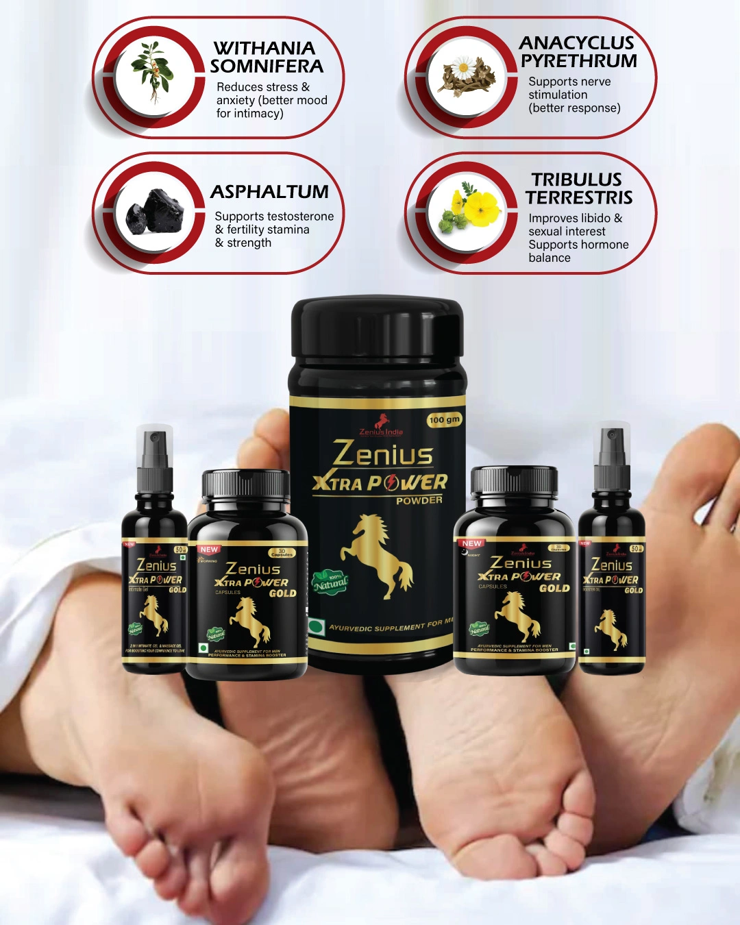 - Powder: This is also topically applied, with its additional benefits derived from the herb mixed above.Zenius Xtra Power Gold Kit