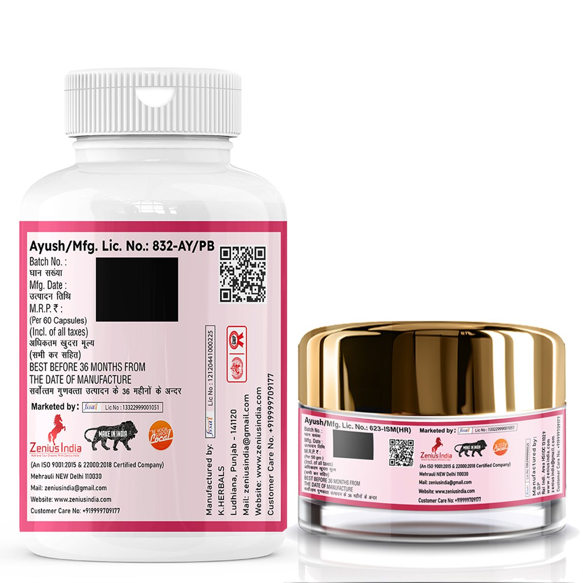 Zenius Again Vergin Kit is a comprehensive solution to rejuvenate female sexual wellness and solve various issues in sexual health. The herbal capsules and vaginal tightening cream are the two primary components of this kit. Together, each of the two parts provides formulations with a synergistic blend of natural ingredients that work to improve sexual desires,intimate moisturizer, and fulfillment.