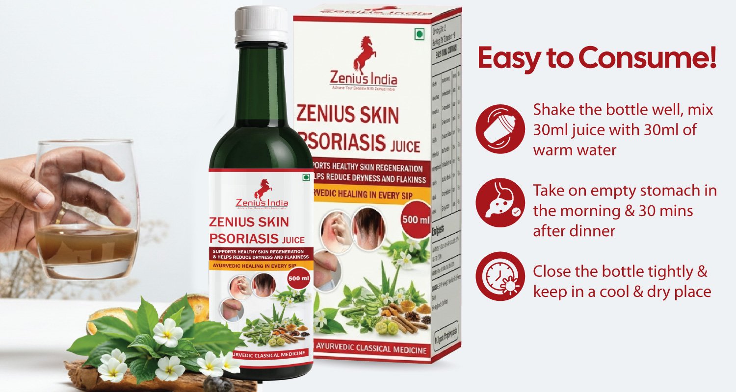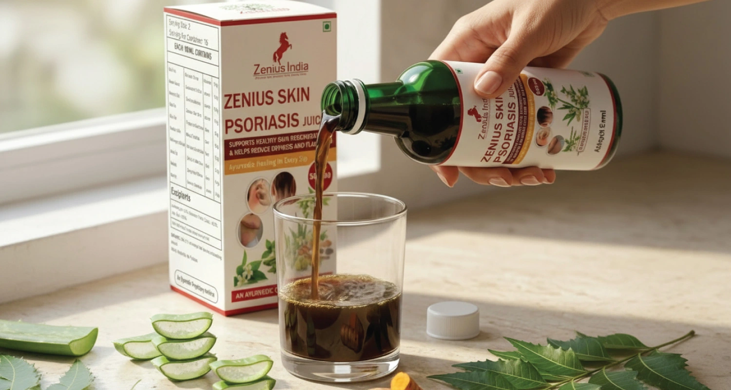 Zenius Psoriasis Juice is an herbal detox drink designed to support natural psoriasis treatment. Made with Ayurvedic ingredients, this psoriasis juice helps cleanse the body and promote healthier skin. If you’re looking for aloe vera juice psoriasis, best fruit juice for psoriasis, or a natural drink for psoriasis management, this formula supports skin healing and reduces flare-ups.