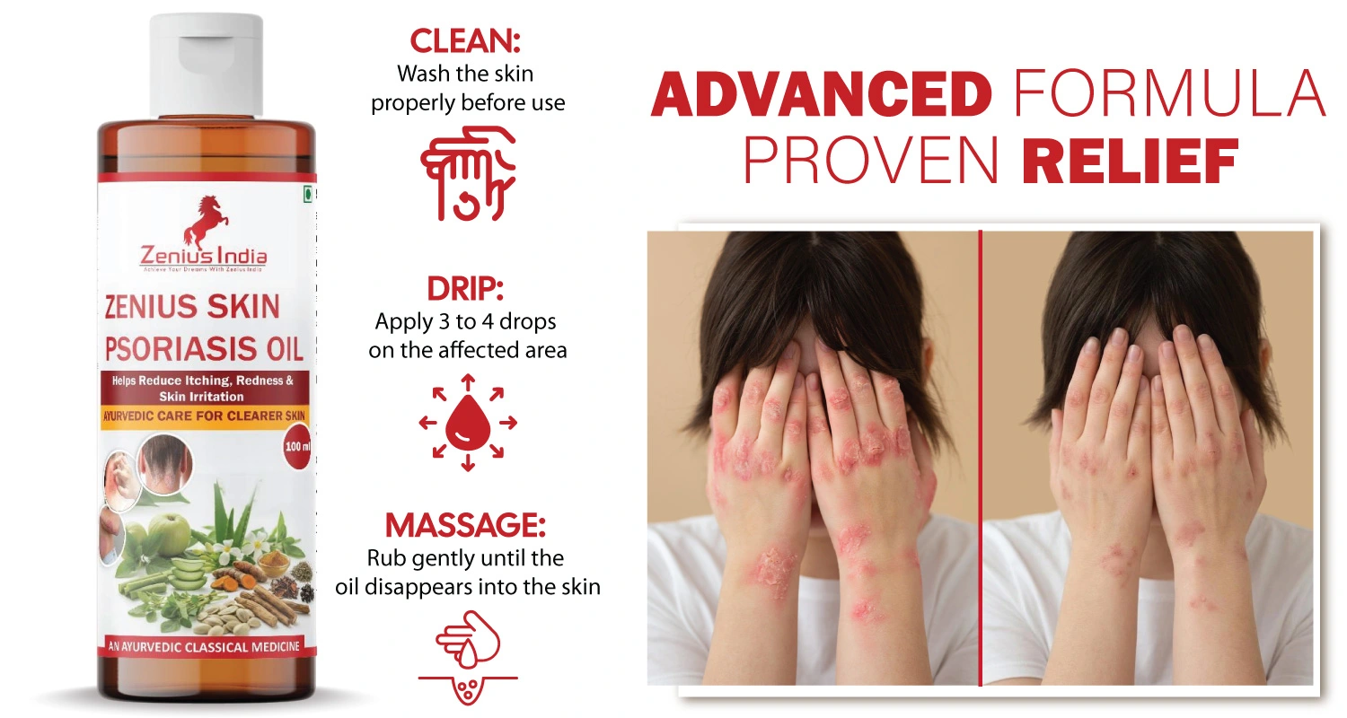 Zenius Psoriasis Oil is a herbal psoriasis oil for hair and body designed to soothe irritated skin and scalp. This best oil for psoriasis helps reduce dryness, itching, and flaking. Ideal for scalp psoriasis treatment, this oil nourishes roots and improves scalp health. If you’re searching for psoriasis scalp oil, hair oil for psoriasis, or body oil for psoriasis, this Ayurvedic oil provides gentle yet effective care.