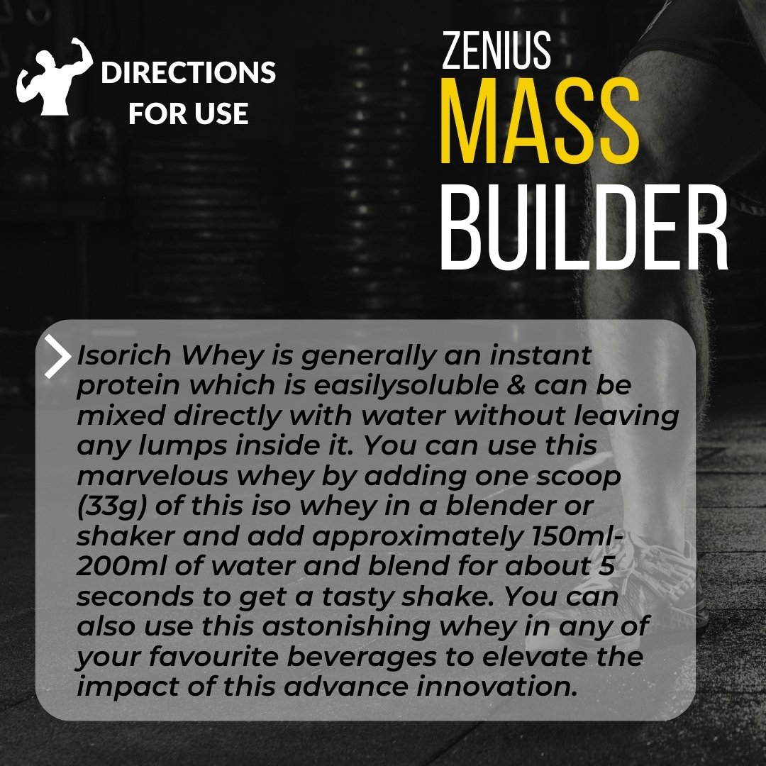 Mix One Scoop: Take one level scoop (about 30 grams) of Zenius Super Mass Builder powder.