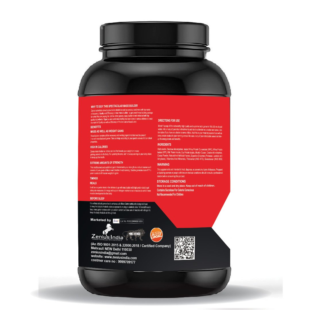 Zenius Super Mass Builder 1KG is a premium muscle growth supplement designed to fuel your gains and support advanced muscle development. Formulated with a powerful blend of high-quality protein, complex carbohydrates, and essential nutrients, this mass gainer powder is perfect for anyone looking to increase muscle size and strength effectively. Whether you’re a beginner or an experienced athlete, Zenius Super Mass Builder provides the calories and nutrition your body needs to recover faster, build lean muscle, and enhance overall performance.