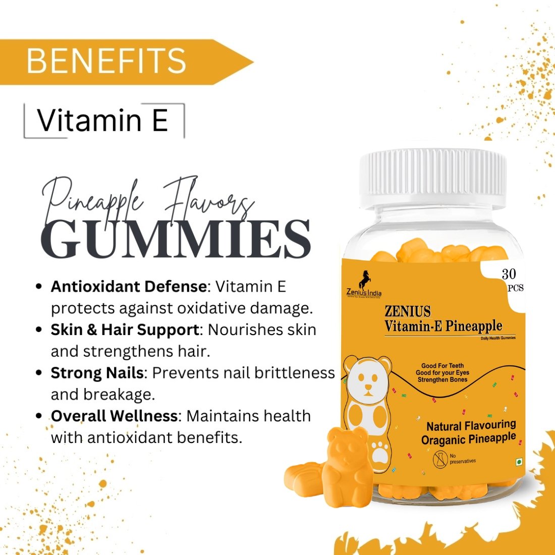 Zenius Tropical Pineapple Vitamin E Gummies: Boost Your Skin Health